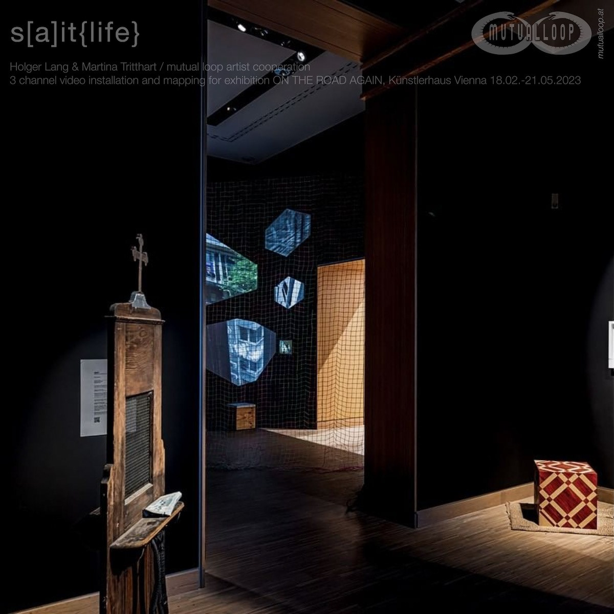3 channel video installation and mapping for exhibition ON THE ROAD AGAIN, Künstlerhaus Vienna 18.02.-21.05.2023